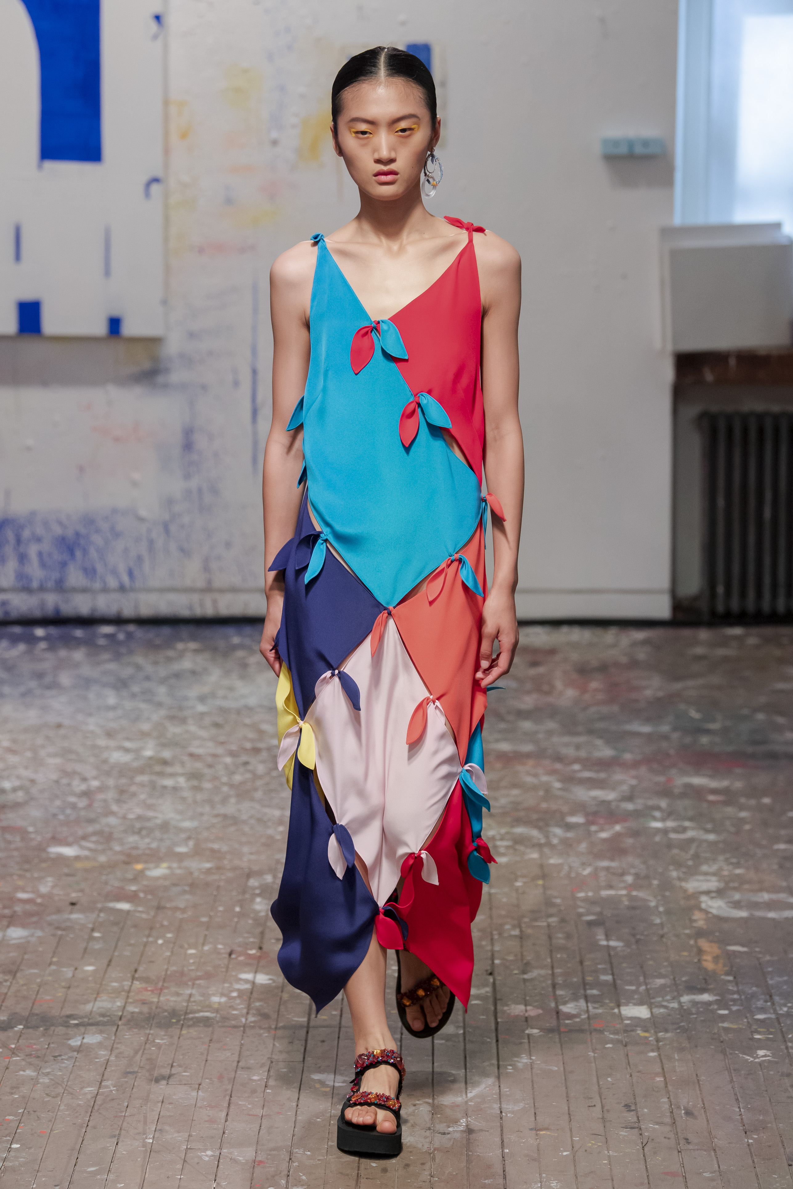 Jonathan Cohen我们在这一季的开场中可以看到一件刺绣似美国国旗的衬衫裙,精巧而有活力,做了彩虹条纹和磨边处理。设计师在圣地亚哥长大,他不记得美国和蒂华纳之间有“边界”,只觉得这一切都是“美丽的色彩和文化的模糊”。这条裙子代表了他自己的身份,以及我们在一起会更好的想法。