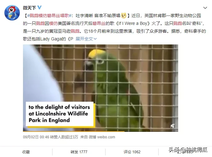 她先是因为一只鹦鹉翻唱《If I were a boy》被cue上了热搜,紧接着又因为疑似“陕西人”的身份刷屏。