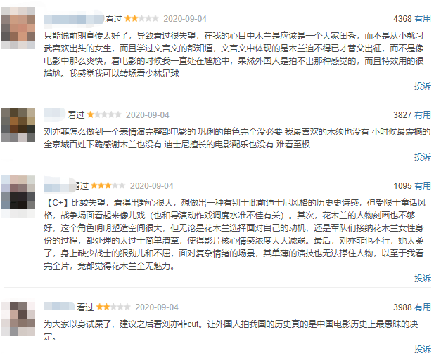 当然,相比于粗制滥造的海报,剧情才是观众拒绝《花木兰》的根本原因。